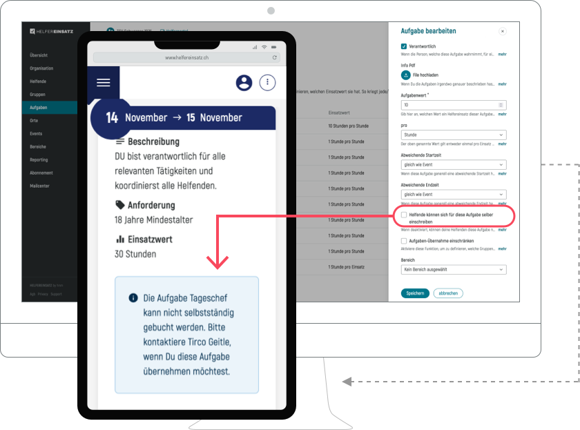 Es gibt Aufgaben, bei welchen ihr die Kontrolle über die Einsatzvergabe haben wollt. Helfereinsatz bietet auch diese Möglichkeit.